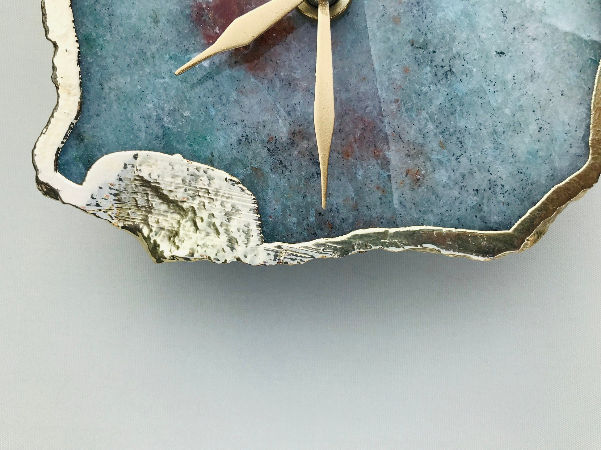 Grey Green Aventurine Agate Desk/Wall Clock/Personalised Momento