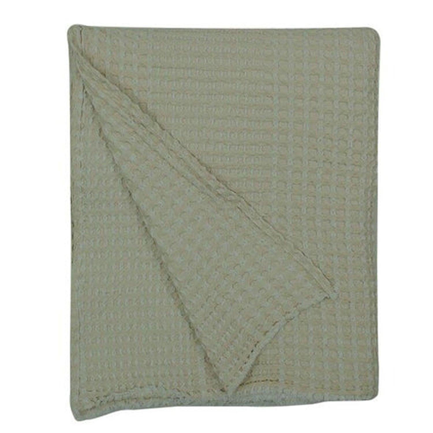 Sage Green - Waffle Weave Throw Blanket | Super Soft | Pre-Washed | Pure Linen, Linen Cotton Mix or Pure Cotton Fabric